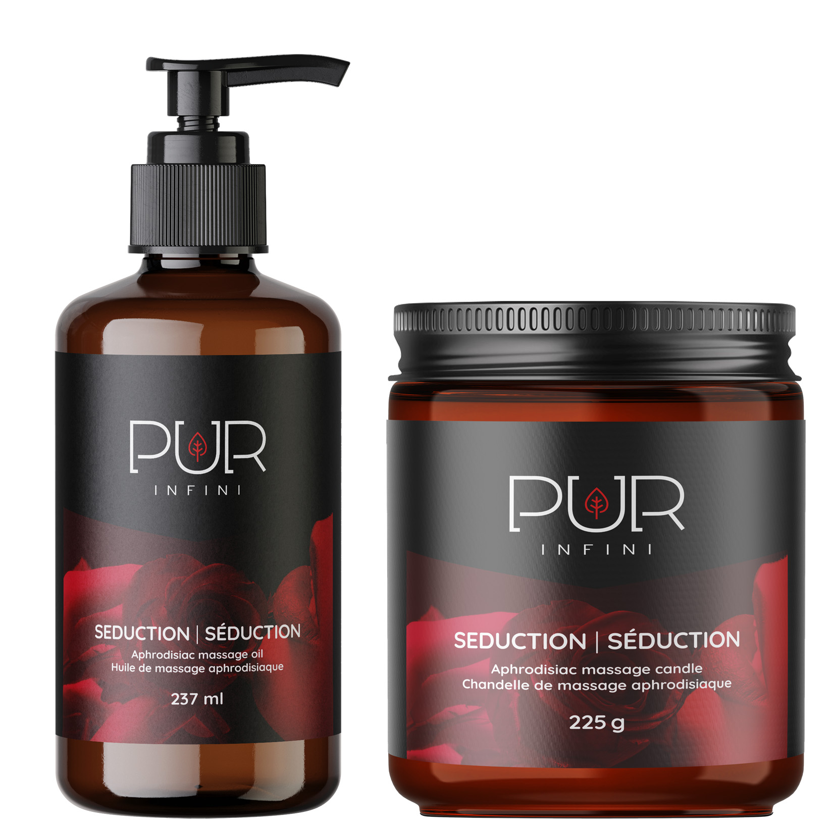 Le duo Séduction incarne la rencontre parfaite entre sensualité et raffinement. Pensé pour attiser le désir et raviver la passion, il transforme chaque moment à deux en une expérience sensorielle profonde, empreinte de chaleur et de douceur.